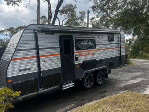 21 foot dual axle with electric brakes. L shape dinette & lounge, lots of cupboards, 3 way fridge, microwave oven, 4 burner gas stove top including griller and range hood. AM/FM radio and internal speakers, wind up TV antenna. Roof mounted Dometic air conditioner / heater unit. Roll out awning with full annex only used 3 times. Front storage boot, new deep cycle battery fitted. Queen size island bed. Recently serviced.