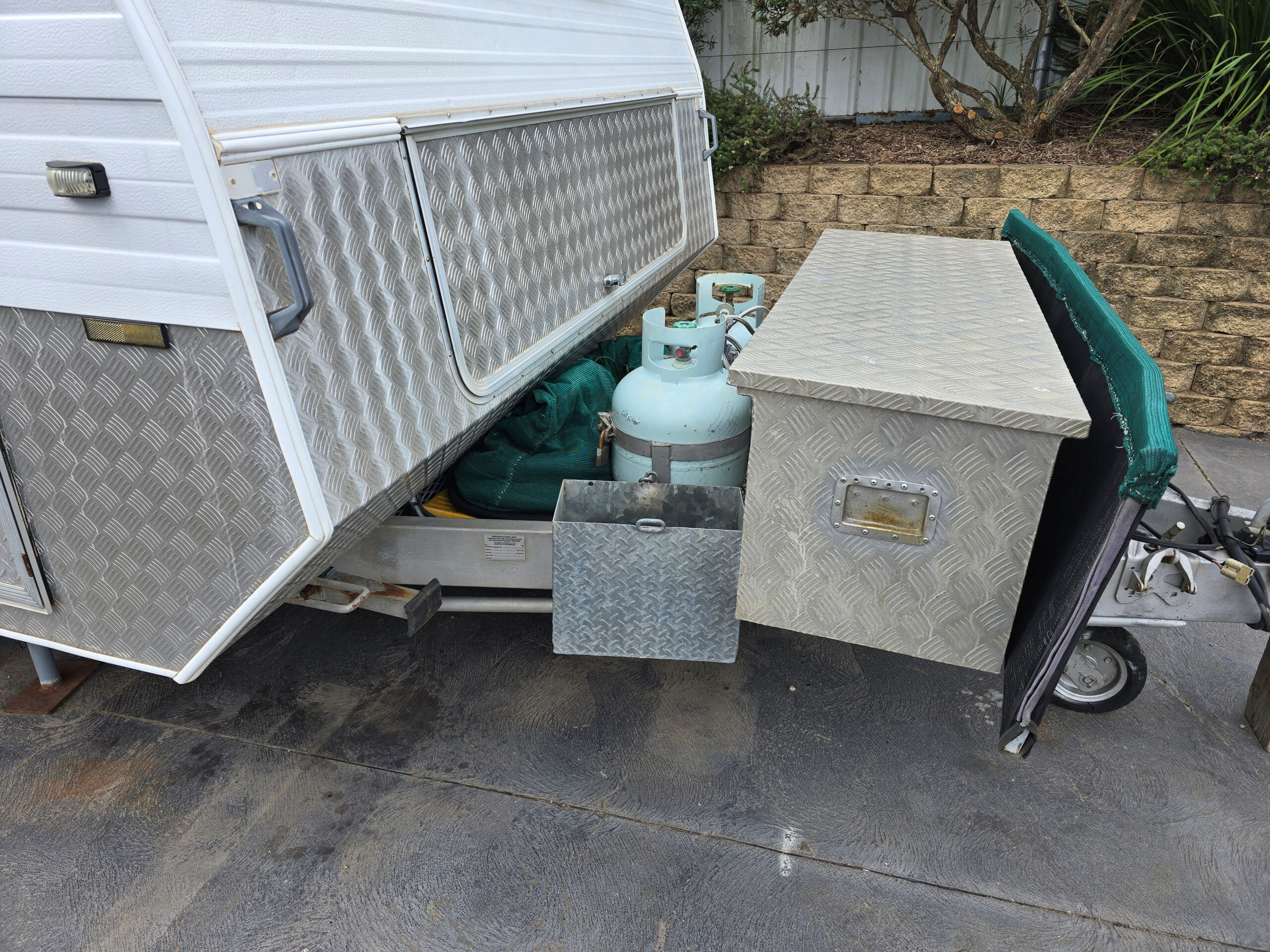 • Portable 12 V fan, fire drum, electric water pump, plus ramps, chocks, drain hoses, spare filters, etc.