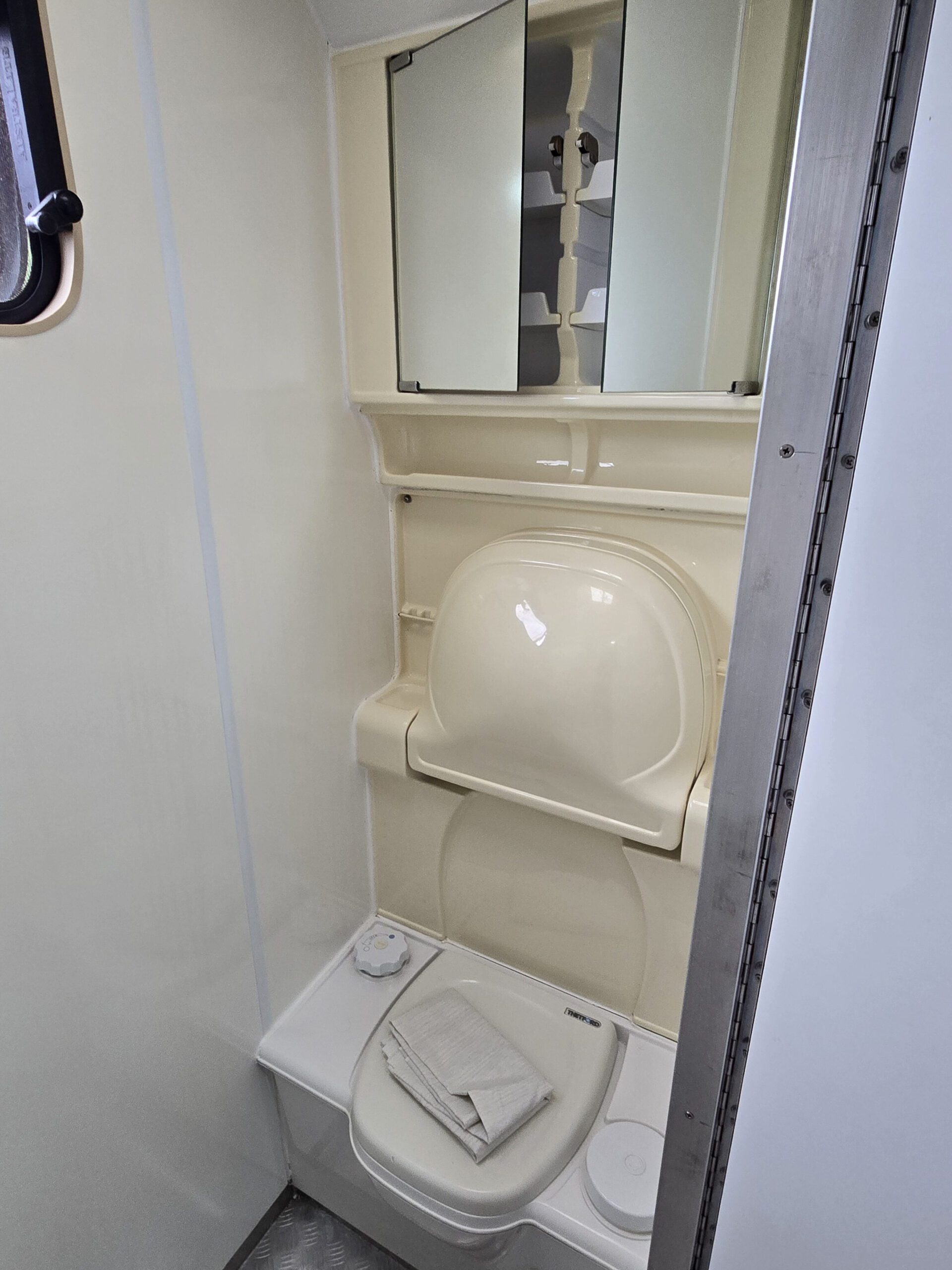 • Combined shower/toilet/vanity with Thetford cassette toilet