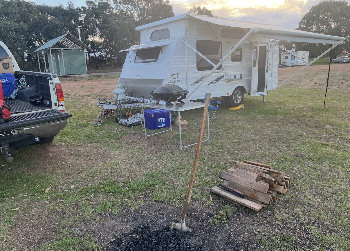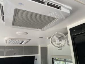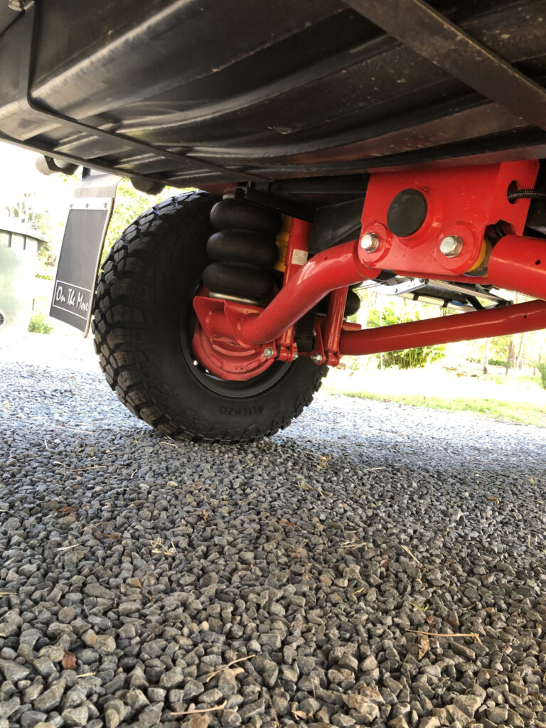 Full size dual axle with dual batteries, solar panels queen size island bed, new pull out awning