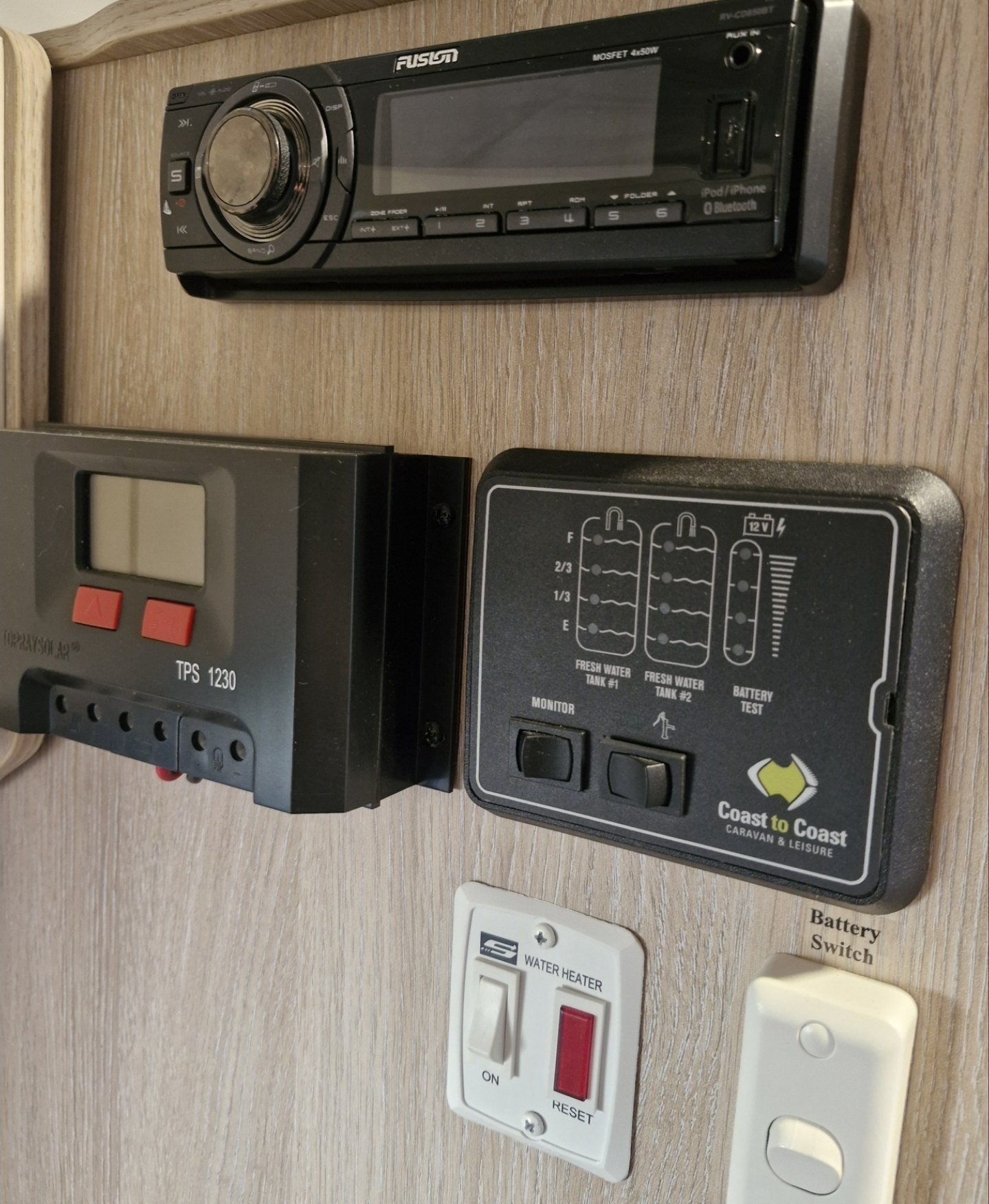External power plugs, external TV aerial plug, also external water tap on drawbar and gas bayonet