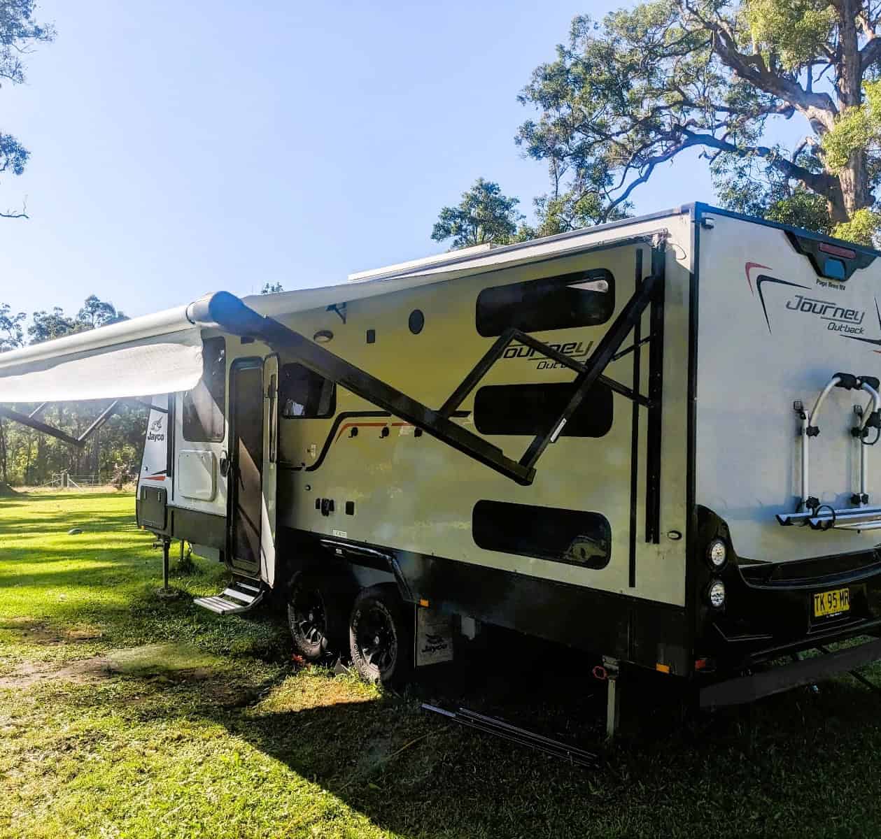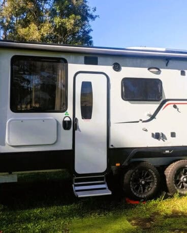 North South Facing Queen Bed, 3kg Washing Machine, Separate Toilet shower. Large fridge 3-way 180L. It also has a 150kw solar panel, a deep cycle 100AH battery, and a 21.5 inch TV/DVD. Electric Awning. Microwave, 4 Burner gas stove and oven with grill. Spacious booth Lounge, loads of internal storage cupboards. 2 x 80l water tanks & Gas Instant Hot Water Service. 2 Bike rack.