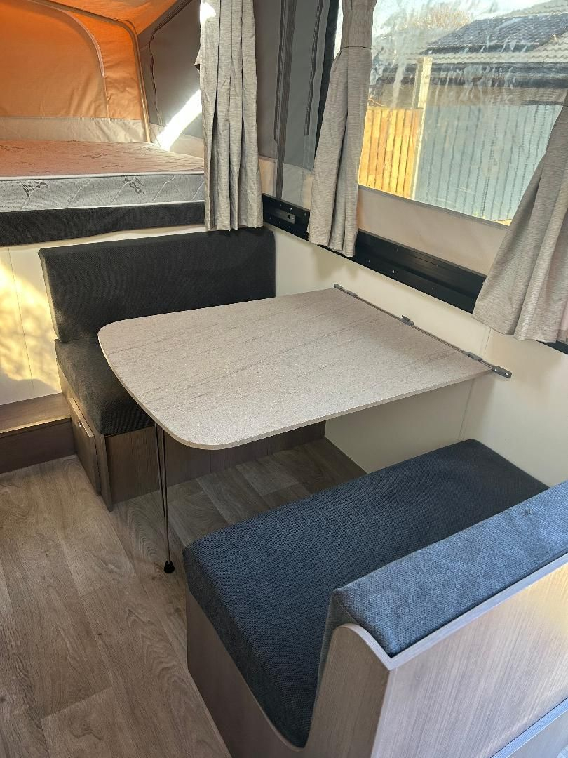 It has a Fiama wind out awning and sleeping space for up to six people, with a queen and a double bed and a club lounge that converts to a bed.