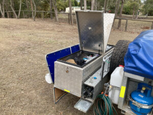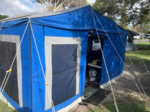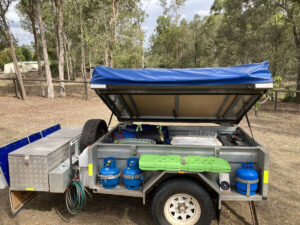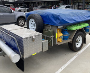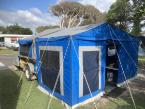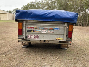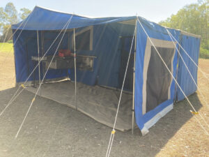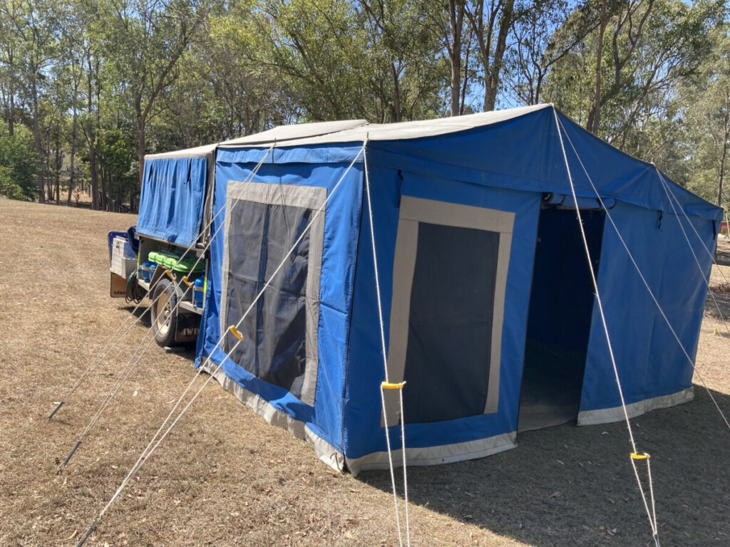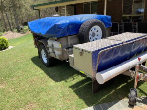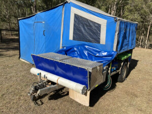 2009 soft floor camper. Australian made. 15 ounce canvas on 7×5 galvanised, braked, heavy duty trailer. Trailer in VGC. Tent in GC. Fully enclosed annex and extra room. High roof, peak height 255cm. 70 litre water tank, 2 x 25 litre water bottle storage, 3 x gas bottles, new battery box, currently no deep cycle battery, huge storage box, steel and pvc pole carriers, max trax, shovel, stone deflector, 2x Jerry can holders, large covering tarpaulin and ground tarps. Solar panel included. Brakes and bearings recently serviced. Many extras ready for camping. We are original owners, selling as kids have grown and we are moving to a caravan. Happy to get the right people set up and ready to go camping.