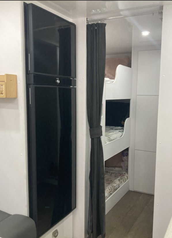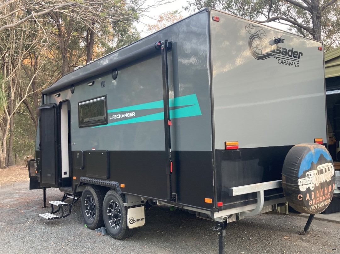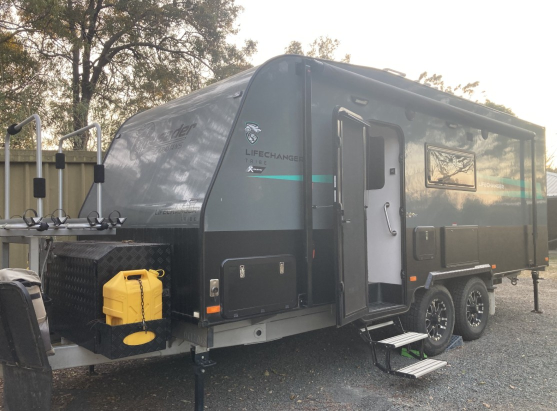 This family caravan has a low tare weight (~2,400kg) compared to most others we looked at which helped us to meet tow weight requirements. The shorter length also helps with fitting onto sites and navigating backroads. It towed without trouble with a MUX.