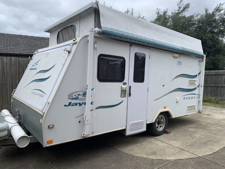 Queen bed at front, double bed at rear and set of bunks in middle which also folds into a couch. Kitchen table also folds down into double bed. Domestic 3 way fridge, reserve cycle air conditioner, microwave,12V range hood, 3 bummer gas and 1 electric hot plate. Grill never been used. Plenty of cupboard space at front and rear of van and storage underneath seats. Flys for over beds, 2 gas bottles.