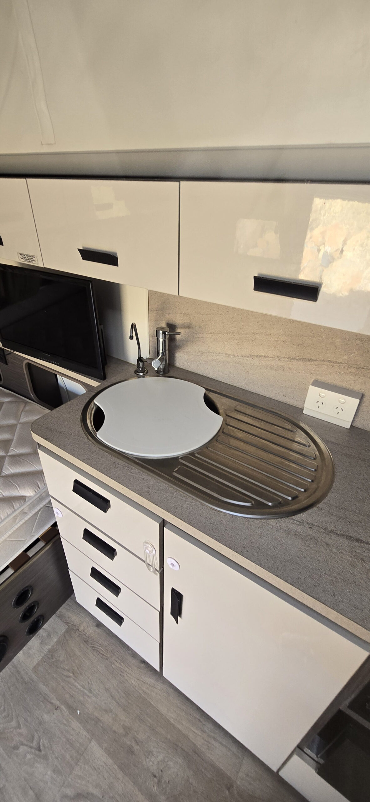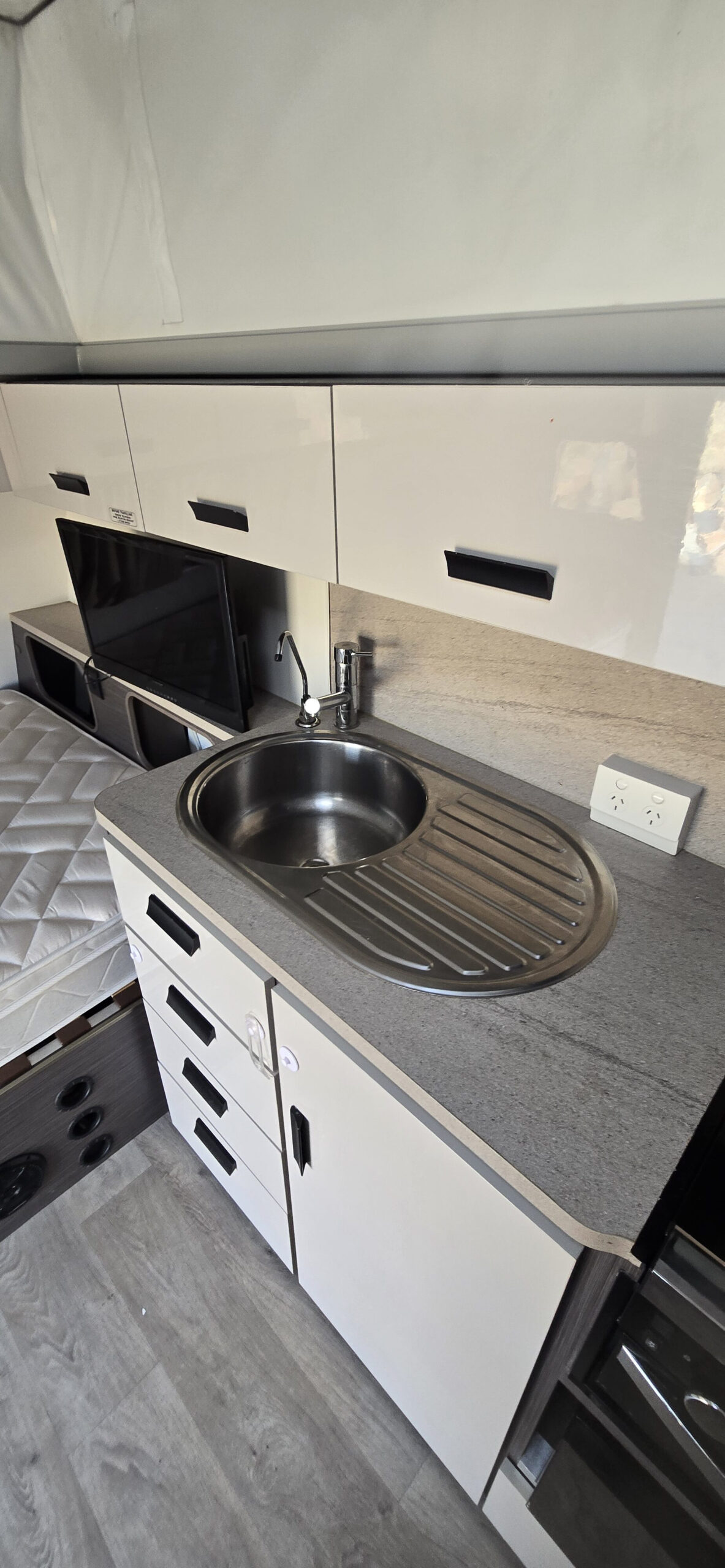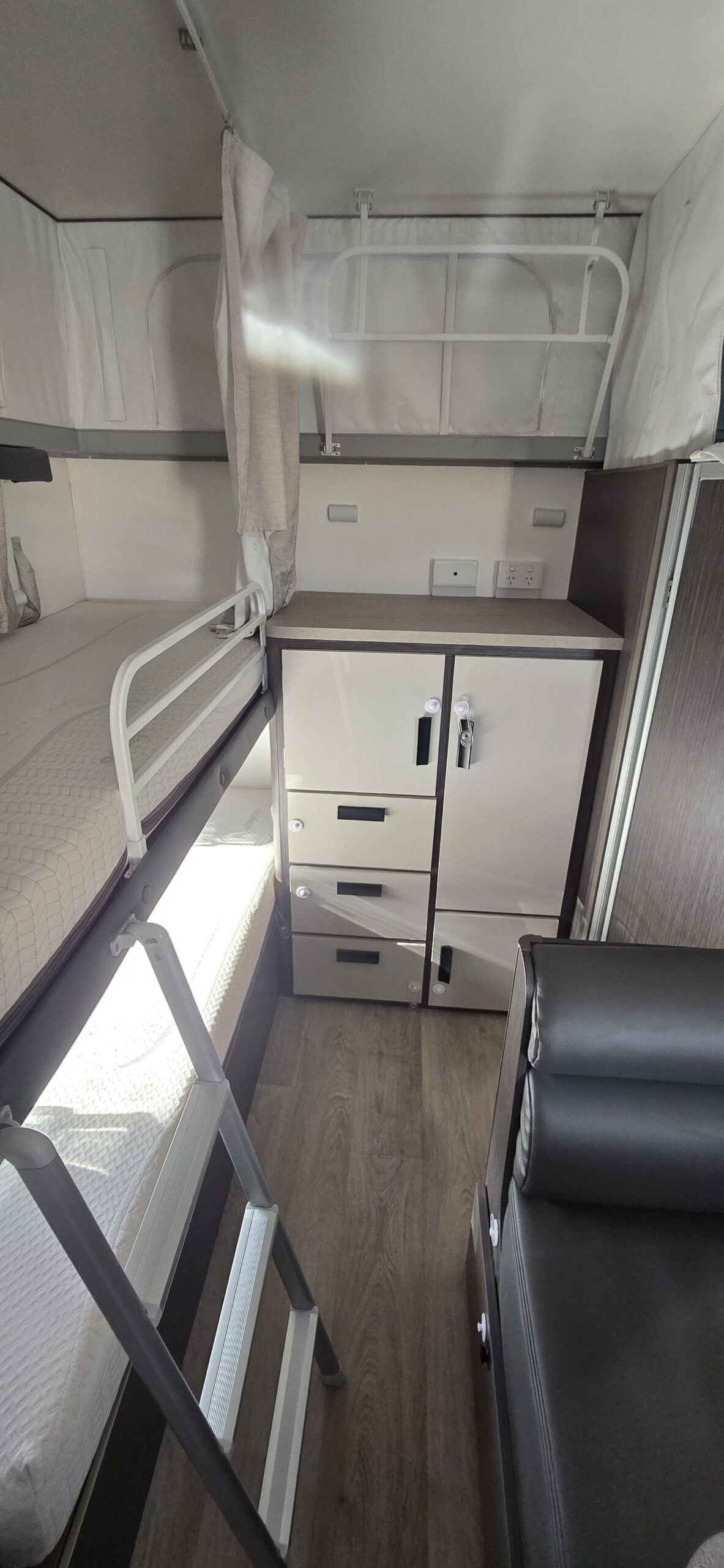 Excellent condition. Travelled less than 4000 km. TOP OF THE RANGE. Dometic air con. Windguard antenna. Outdoor 240v, 12v & TV point. Outdoor fold down table. DVD/CD/MP3 player. 15″ led TV. 2 brackets and connections for the TV bedroom & at the lounge. Water tank & filter. 4 burner stove & grill. Slide out pantry. Gas heater. Queen bed. Lots of storage & hanging space. 120w solo panel. 12v battery system. Generator Hatch door & slideout. 150 lt 3 way fridge. L shaped lounge with leather upholstery (burgundy) Timber floors Yes REAL TIMBER. 2 gas bottles. outdoor tap. Full annexe. Rollout awning. 2 spare wheels. Circuit breaker 240v inside. Lge shower. Toilet. Spent most of it life under an awning. Reg to 23 July 2023. Annual rego $227.10. Full storage bin at the front. Pole carrier at the rear.