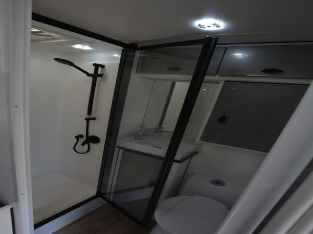 Queen bed. Toilet and shower