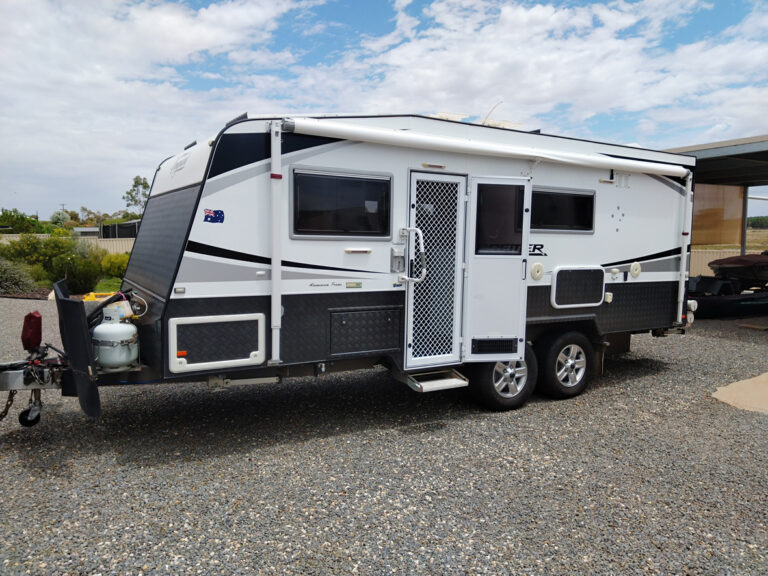 VANGUARD Bremer off road 20’6” VC840 Built December 2014,Exterior smooth composite laminated walls, alloy frame one piece fibreglass roof, Air Bag suspension with compressor air tank and tyre chuck fittings. BBQ slide out, ALKO ESC system, Alloy ROH wheels 5 stud with 285/85×17 tyres,2 9Kg gas cylinders, 4 jerry can holders, DO 35 hitch & hayman reece tow hitch & bars. Hydralic jockey wheel /jack,2x95lt Water tanks 1x95lt grey water tank ,4x 120watt solar panels,2×160 amp agm batteries, Redarc DC/DC charger/Voltech switch mode battery charger 40 amp, 1000watt pure sine wave inverter Pro Star 30 amp solar regulator, suburban gas electric hot water system, Dometic awning sun shade annexe wall & end wall.